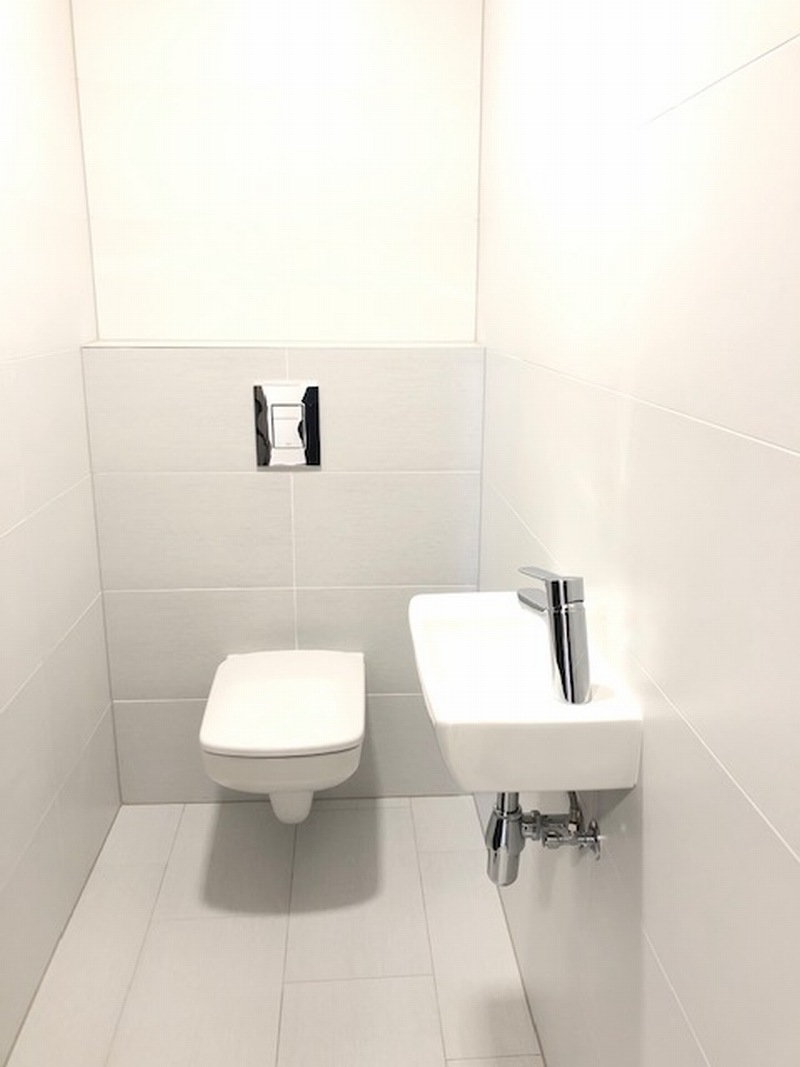mrazák, myčka, sporák s keramickou deskou. Z obýváku se vchází na