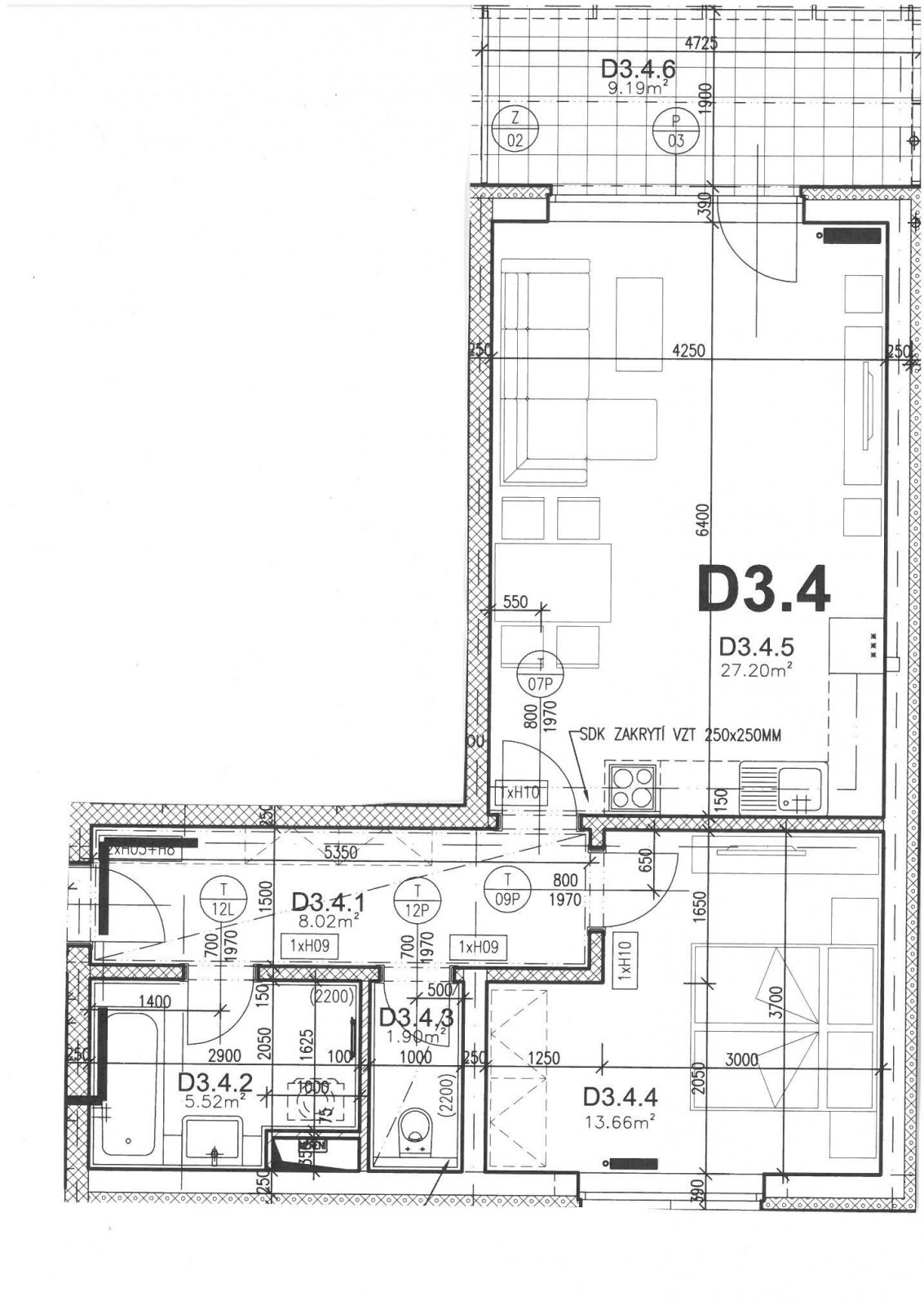prostornou terasu o výměře 9,2 m2. V bytě jsou rovněž zabudované