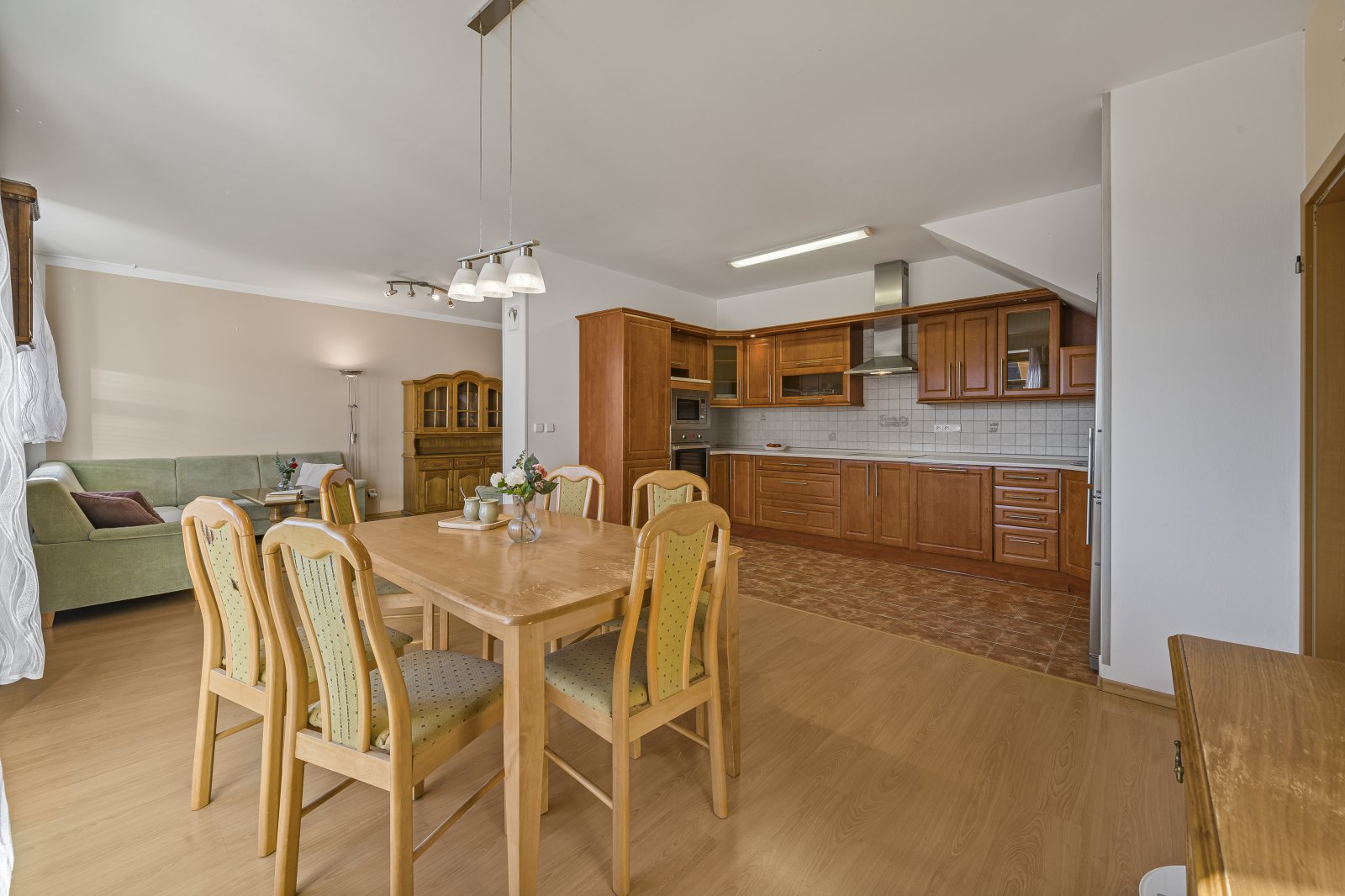 vybavena moderní kuchyňskou linkou se spotřebiči. Mezonetové řešení
