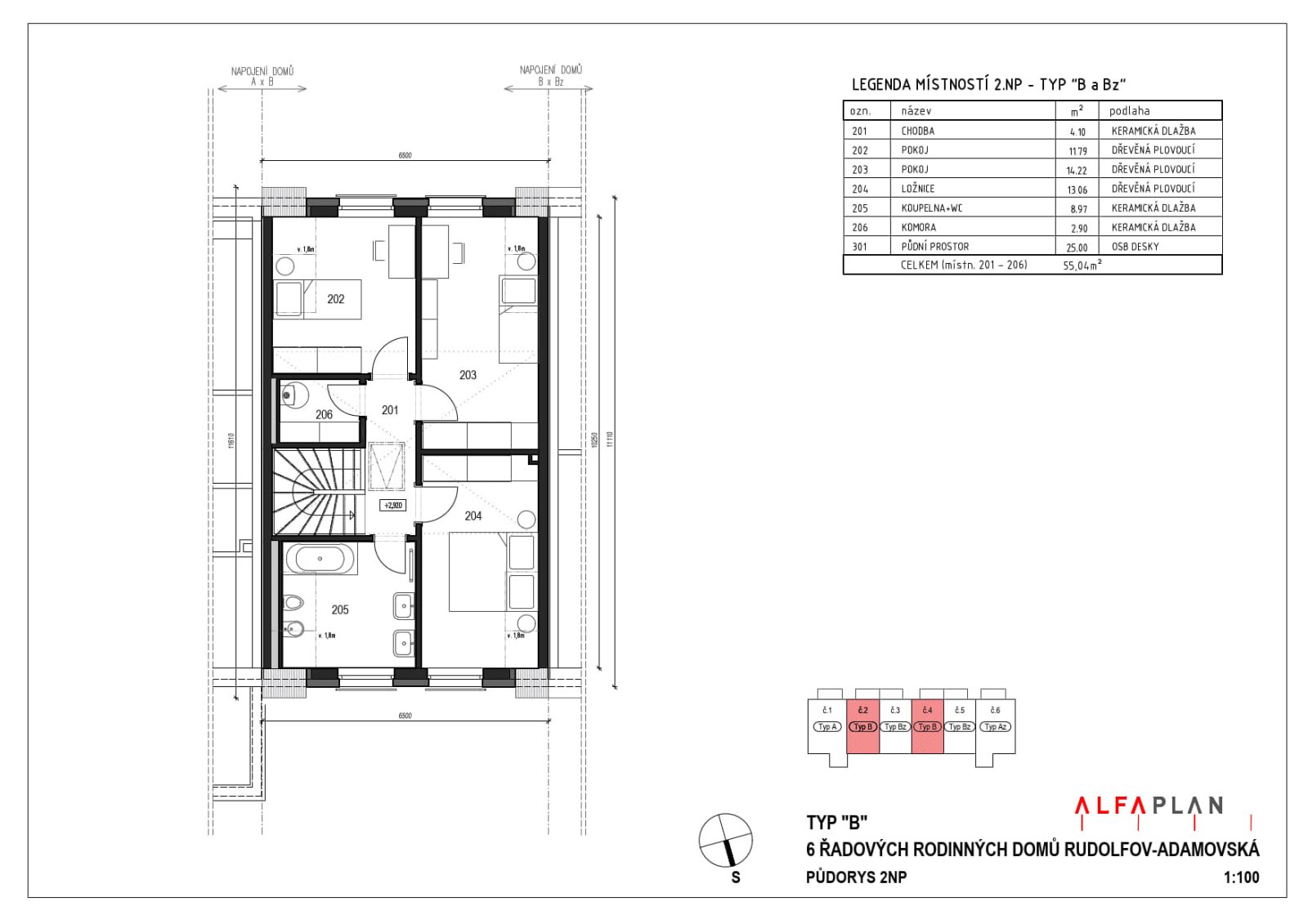(celková plocha patra je 55 m2).