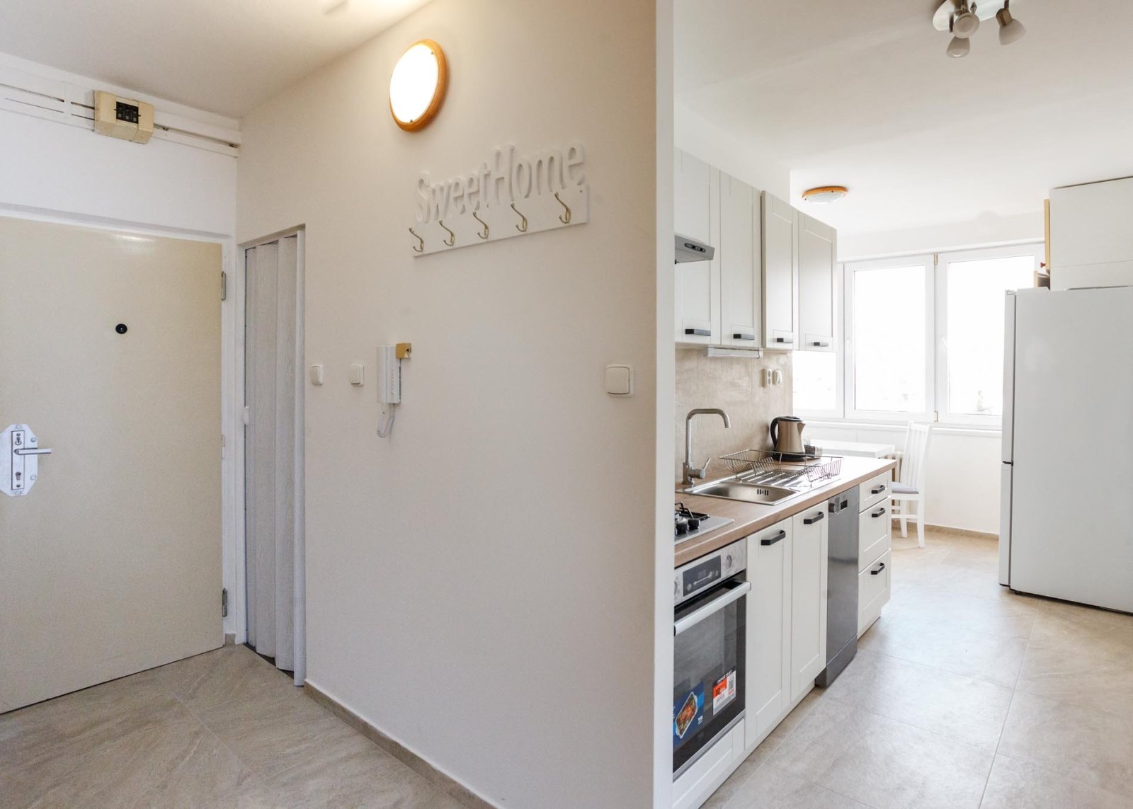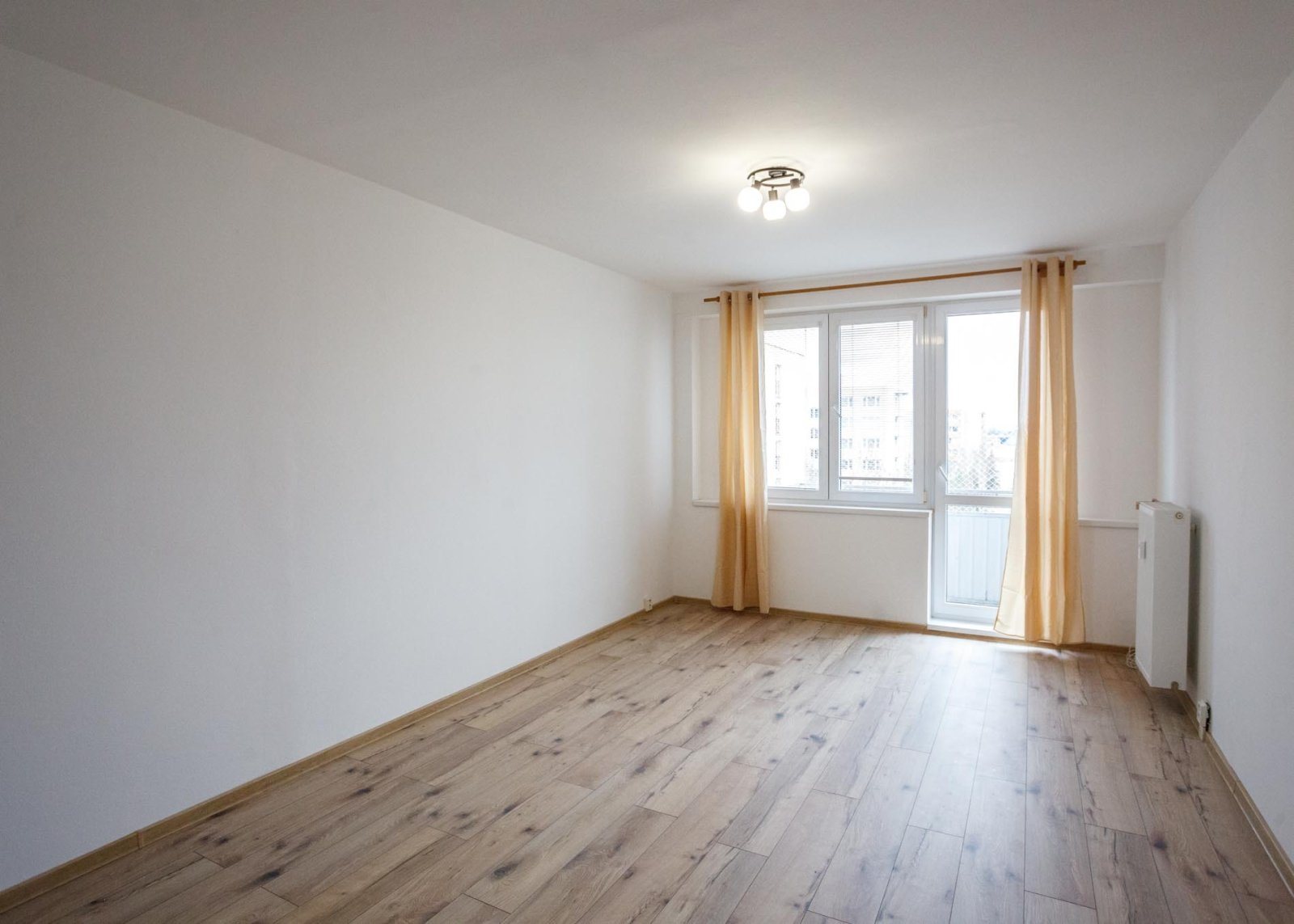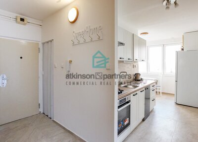 Předsíň, na jih orientovaný obývací pokoj (20 m²) se vstupem na balkon