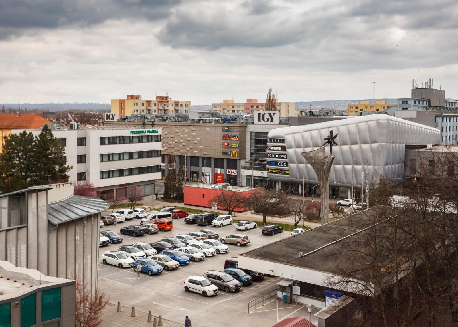 pošta, MHD, supermarket, fitness, služby i obchodní centrum IGY. Nedaleko je